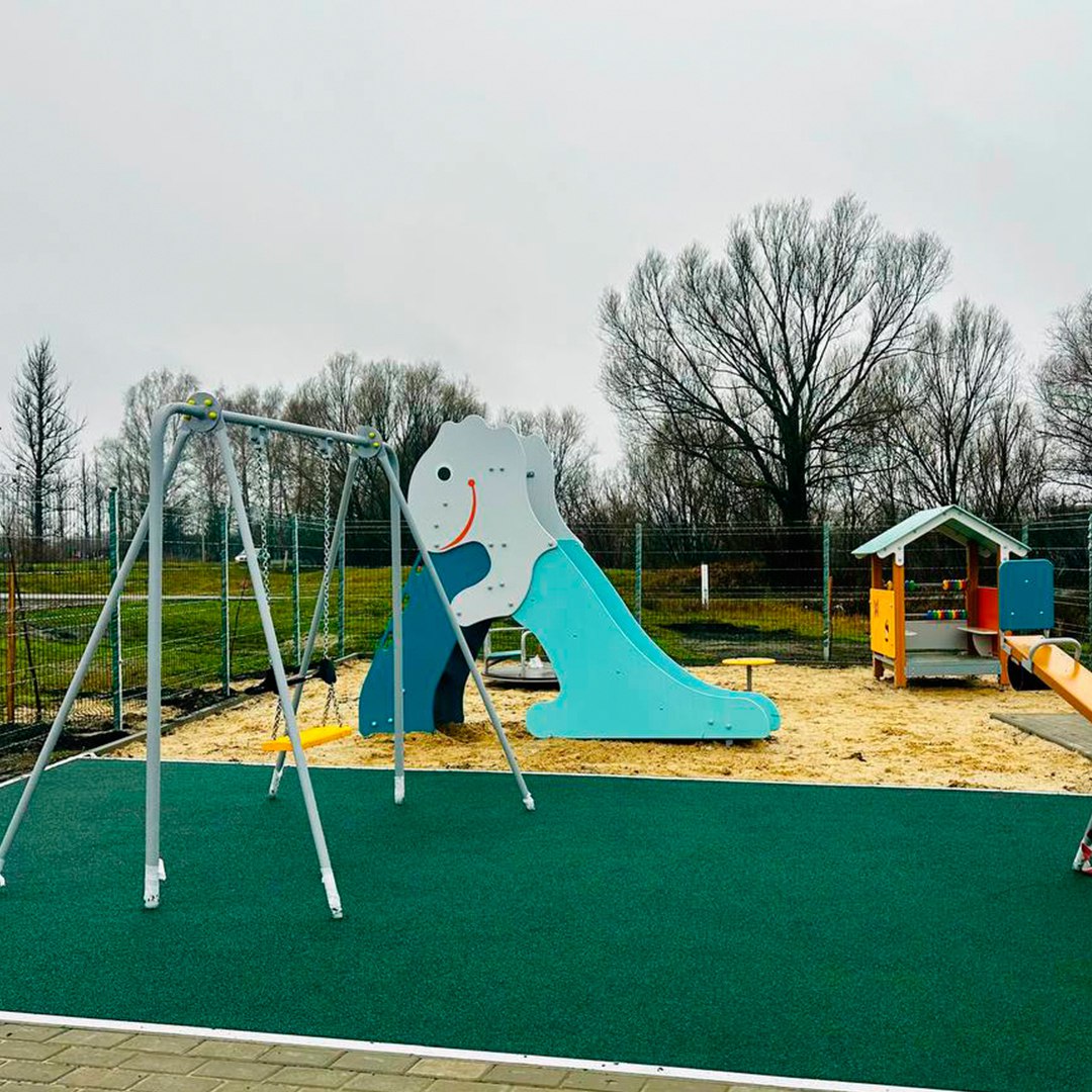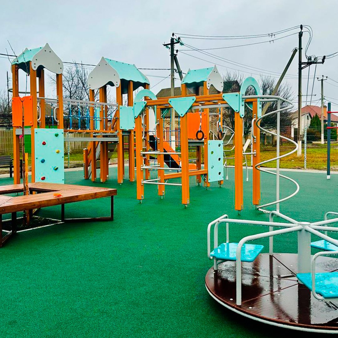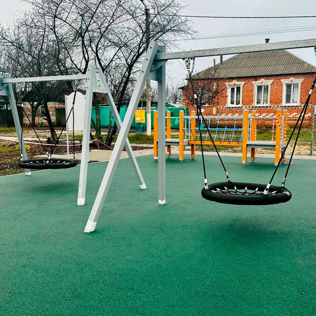 - разнообразное игровое оборудование: качели, карусели, игровые комплексы, горка, домик-беседка и качалка-балансир;