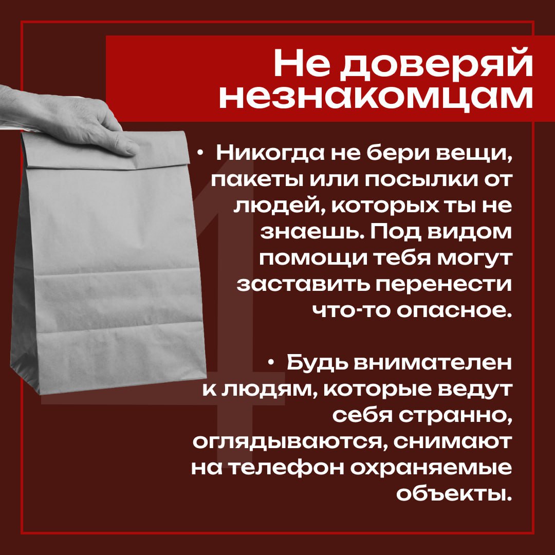 Команда #СВОИвМедиа министерства по делам молодёжи напомнила, как себя вести при обнаружении подозрительных предметов.