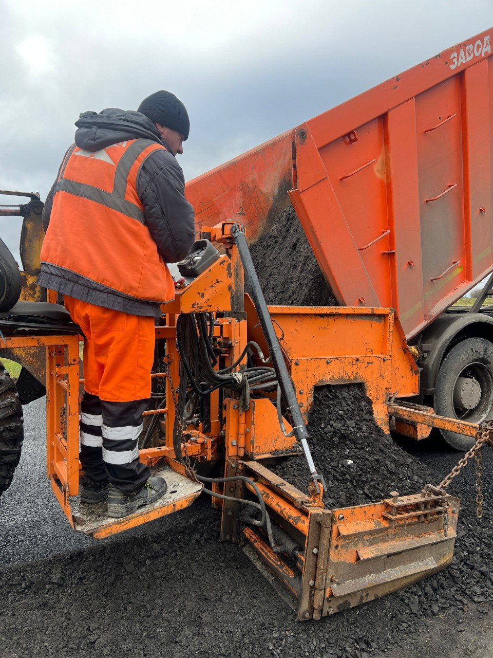 «Это очень старый участок дороги. Ещё в пятидесятых годах прошлого века здесь были уложены бетонные плиты. Их не стали демонтировать. Мы выровняли профиль дороги фрезерованием и уложили два слоя асфальтобетона, провели укрепление обочин. Осталось провести разметку и установить дорожные знаки».