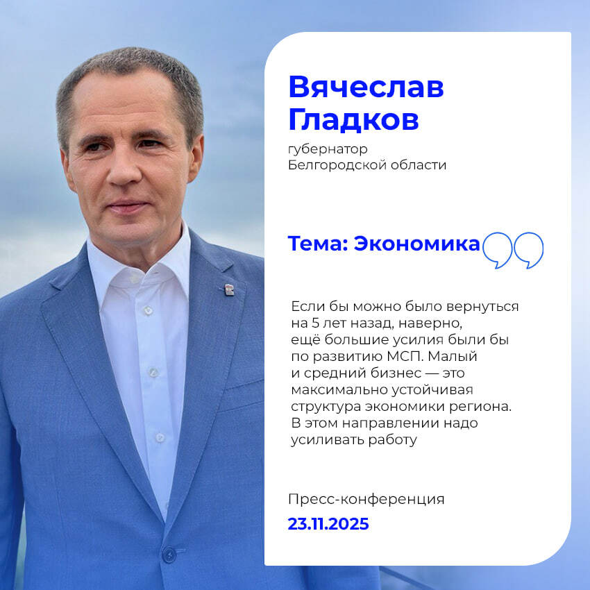 Вячеслав Гладков сообщил журналистам на пресс-конференции, что экономика Белгородской области успешно развивается, несмотря на сложную операционную ситуацию.