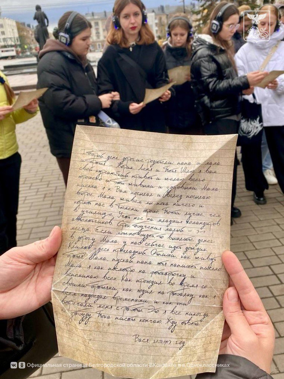 Во время прогулки звучат реальные письма фронтовиков, написанные защитниками белгородской земли в разные эпохи – от времен Великой Отечественной войны до нынешних дней. Истории родных краев, сохранённые в словах солдат, придают экскурсии особый эмоциональный оттенок.