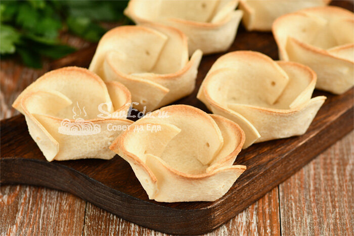 - Формирование оболочек: Сформированные части хлеба помещаются в духовку для подсушивания. При температуре 180°C тарталетки становятся хрустящими и готовыми для наполнения.