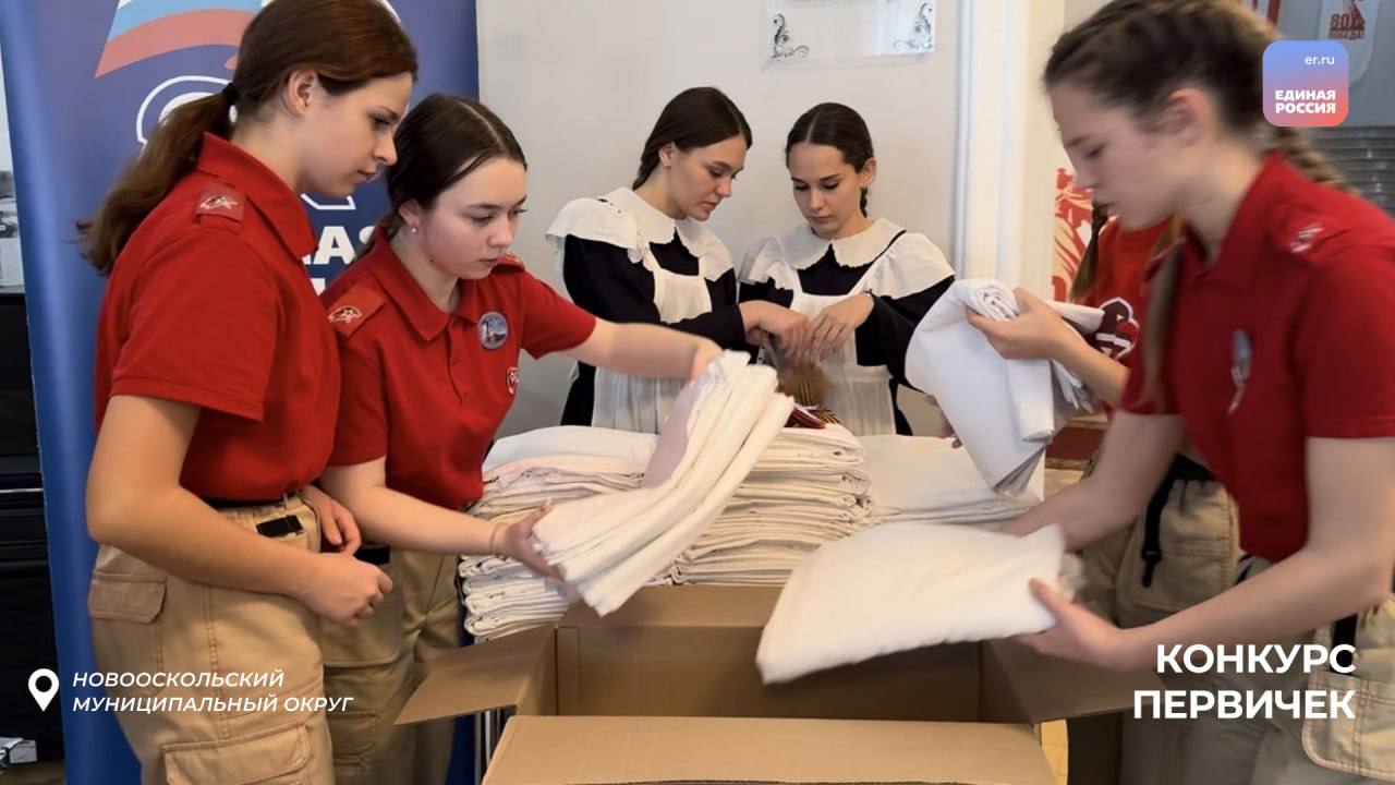 В Новооскольском округе на базе Ольгинской школы №1 продолжается реализация проекта «Творим будущее вместе: от мастерства к милосердию». В рамках инициативы обучающиеся школы совместно с волонтерами занимаются пошивом постельного белья для наших военнослужащих.