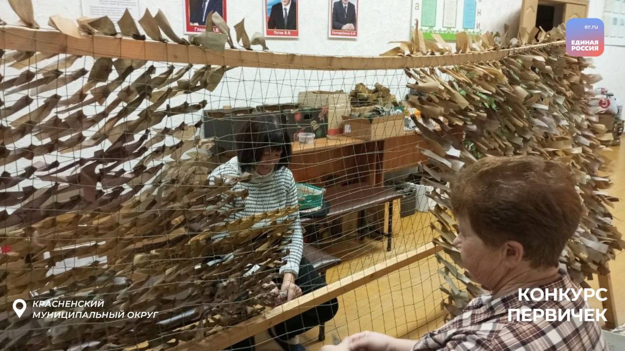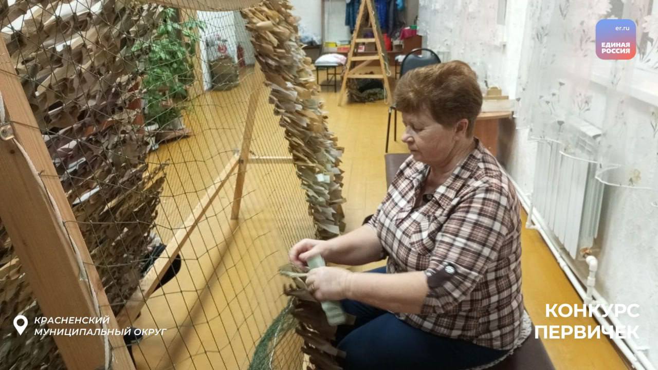 В Красненском округе активно работает волонтерский клуб «Умелые ручки». Здесь члены и сторонники Партии, а также местные жители плетут маскировочные сети для бойцов. Благодаря победе в конкурсе «первичек» активисты закупили швейную машинку, вязальное оборудование, ткани и гарнитуру для пошива, спицы для вязания шерстяных носков и перчаток, пряжу и материалы для плетения маскировочных сетей.