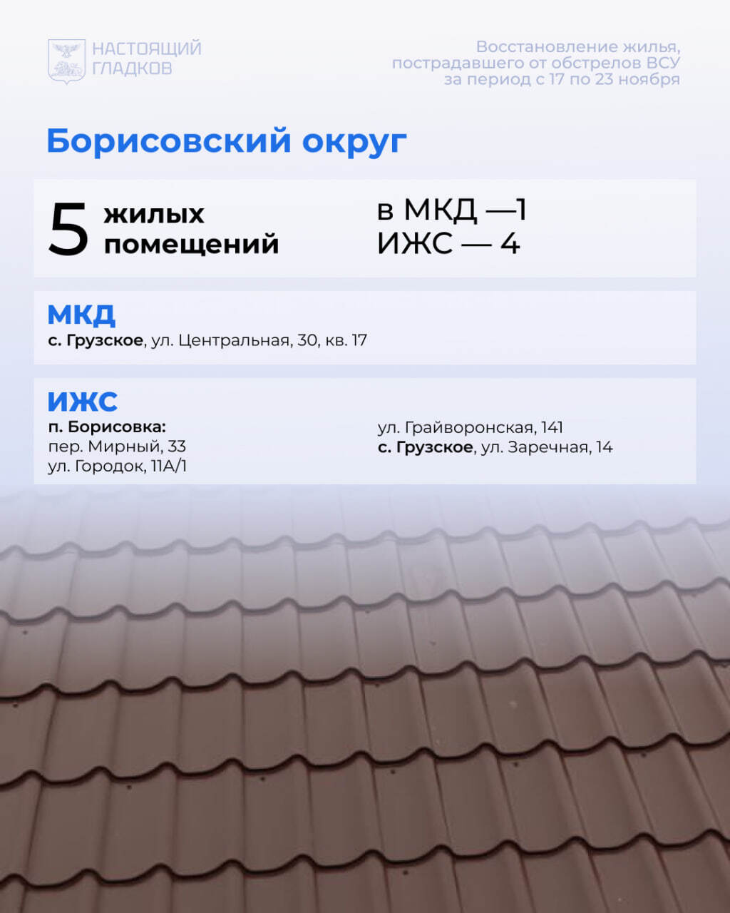 С 17 по 23 ноября в Борисовском МО было восстановлено 5 объектов.