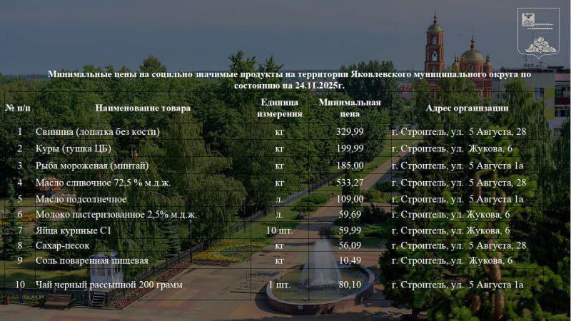 Представляю вашему вниманию актуальную информацию о местах продажи наиболее доступных продуктов питания, входящих в потребительскую корзину, на территории Яковлевского муниципального округа по состоянию на 24 ноября 2025 года.