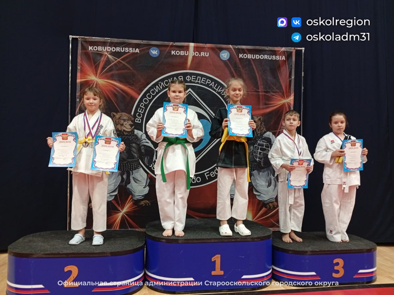 В Подольске прошёл ежегодный Чемпионат России по Кобудо, где выступили 180 спортсменов из 12 регионов страны. Белгородскую область представляли воспитанницы военнопатриотического клуба «Георгиевский» — Попова Виктория, Зайцева Екатерина и Теплова София.