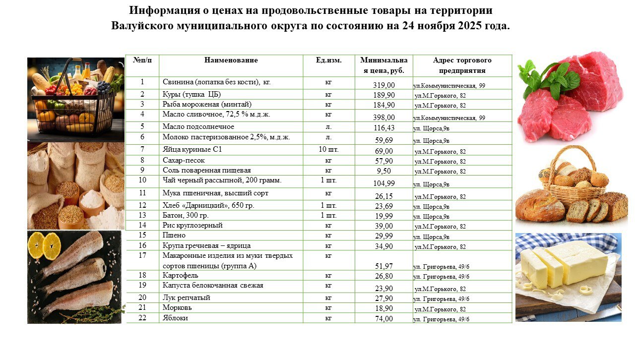 Публикуем информацию о том, где дешевле всего можно купить необходимые продукты в городе Валуйки. Цены представлены на 24 ноября 2025 года.