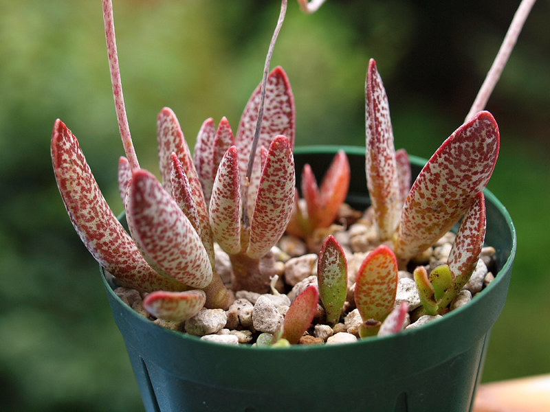 Этот карликовый суккулент, известный как Adromischus cooperi, достигает высоты всего 15 см. Листья Купера могут похвалиться волнистым краем и выразительными темно-фиолетовыми пятнами. Это растение предпочитает песчаный компост и светлые места, идеально подходит для размещения на солнечных окнах. Цветки адромискуса Купера, розового оттенка, добавляют особое очарование во время цветения, которое происходит весной и летом.