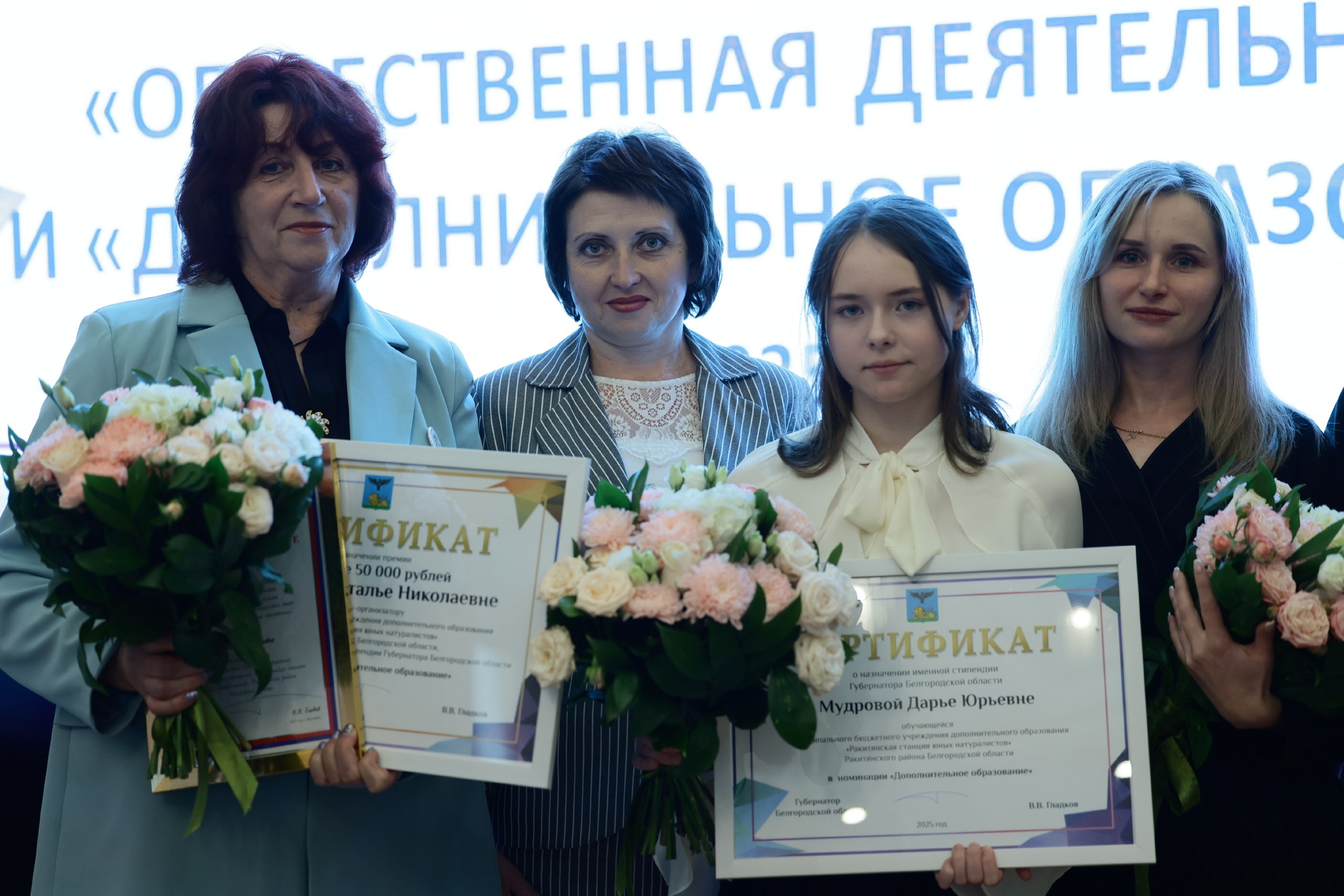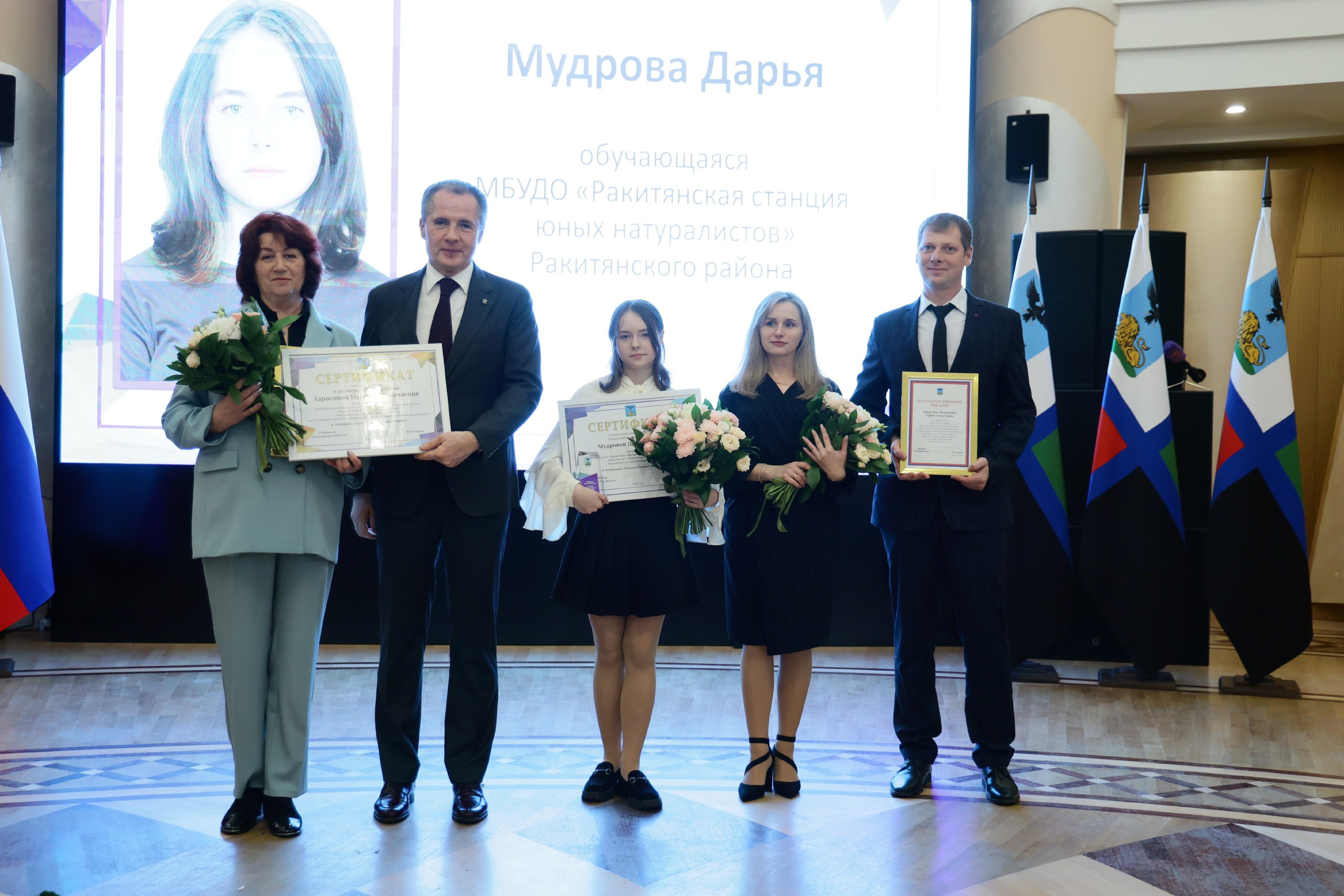 По традиции её педагог-наставник Наталья Тарасова получила денежную премию и Благодарственное письмо, а родителям юной ракитянки вручили Благодарность губернатора за достойное и ответственное воспитание дочери.