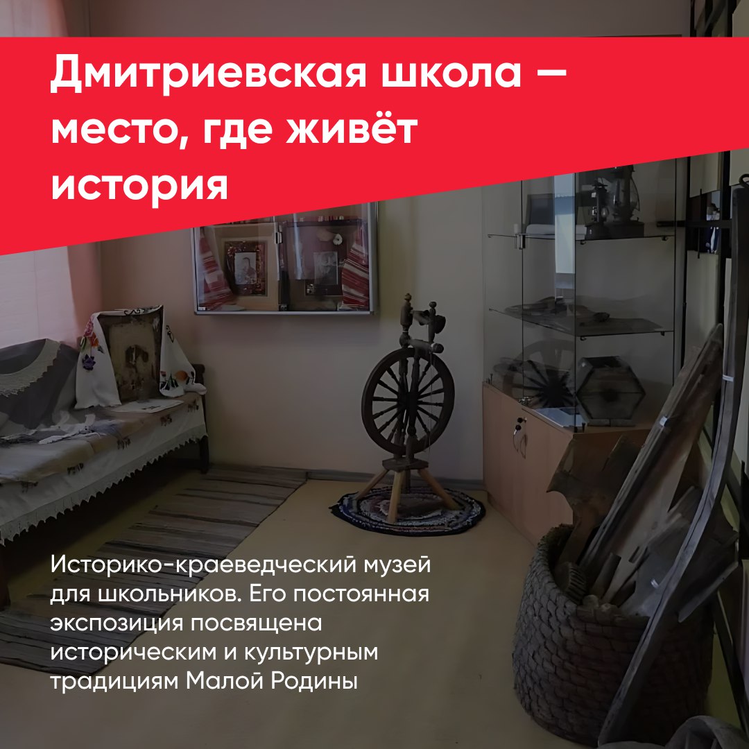В Дмитриевской школе открылся историко-краеведческий музей. Его постоянная выставка посвящена историческим и культурным традициям Малой Родины.