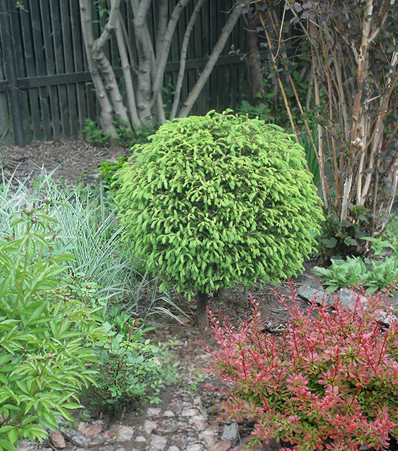 - Ель обыкновенная: популярна благодаря своей универсальности. Стрижка в форме шара или пирамиды позволит выделить ее из общего окружения.