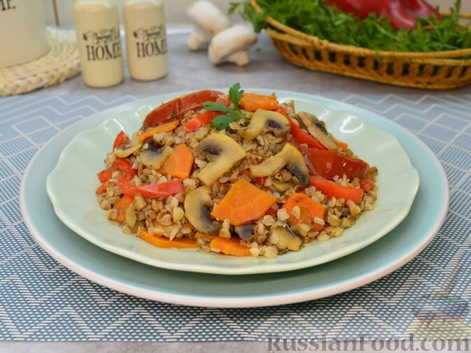 Это простое, но изысканное блюдо порадует гурманов. Основные ингредиенты: гречка, любые грибы по выбору (лучше использовать лесные – сушёные или свежие), цветная капуста, морковь и репчатый лук. Все компоненты жарятся на оливковом масле, создавая отменный аромат. Гречка в этом варианте становится порцией витаминов и полезных веществ.