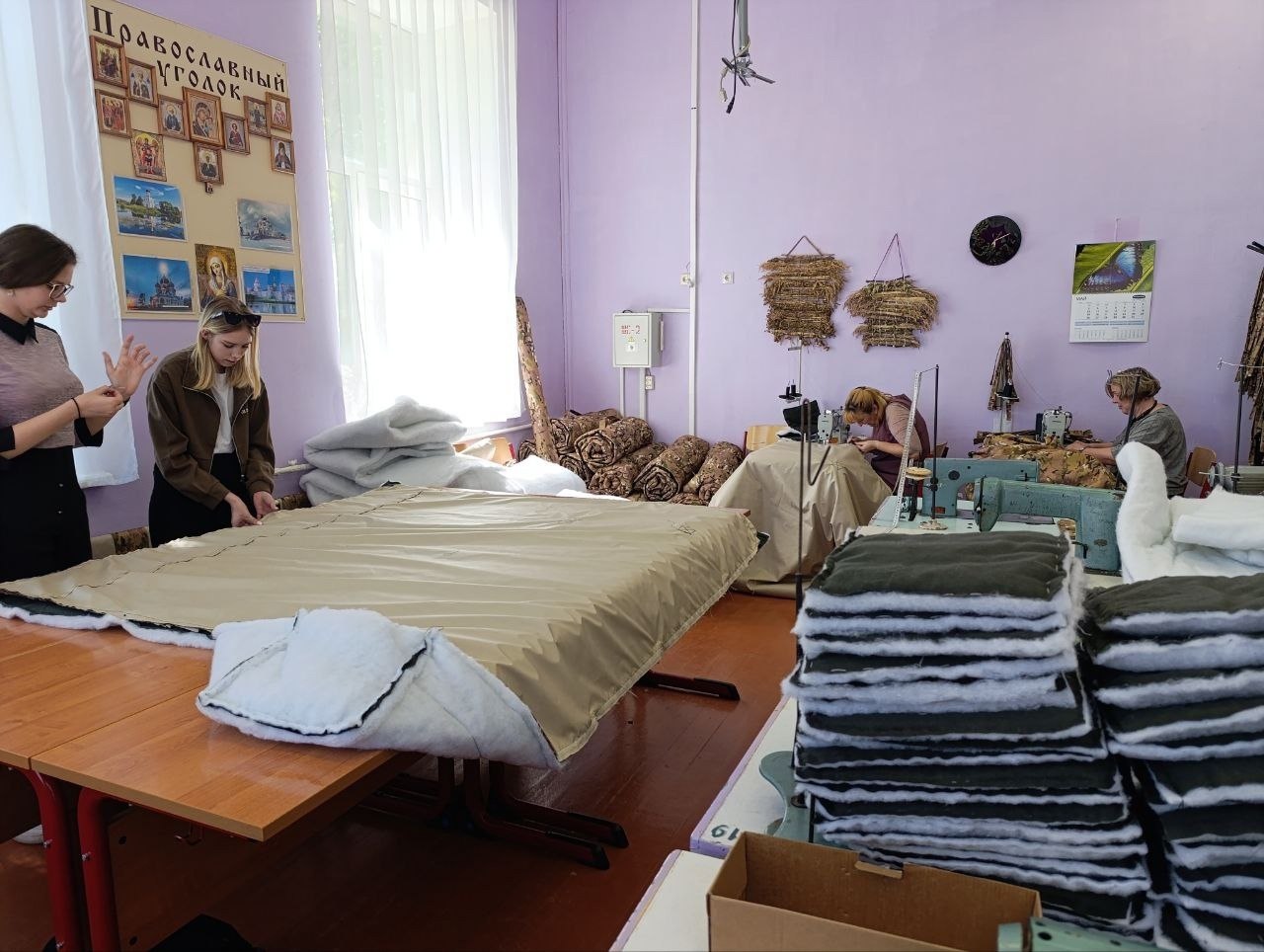 На базе учебного учреждения была создана мастерская по пошиву спальных мешков, где студенты, преподаватели и волонтёры шили тёплые и удобные спальные мешки для солдат, находящихся в зоне спецоперации. Всего было изготовлено 200 комплектов, которые с помощью волонтёров передали нашим бойцам. Швейный коворкинг «Тепло для СВО» стал не просто мастерской, а местом, которое объединило неравнодушных людей, готовых делиться теплом своих рук и сердец