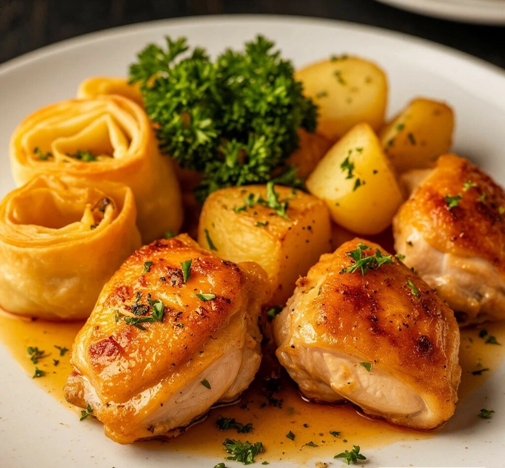 Презентуем оригинальный кулинарный шедевр, который оставит ваших близких в восторге: курица, запеченная с картошкой и изысканными штруделями. Это блюдо — отличный выбор для семейного ужина или праздничного застолья.