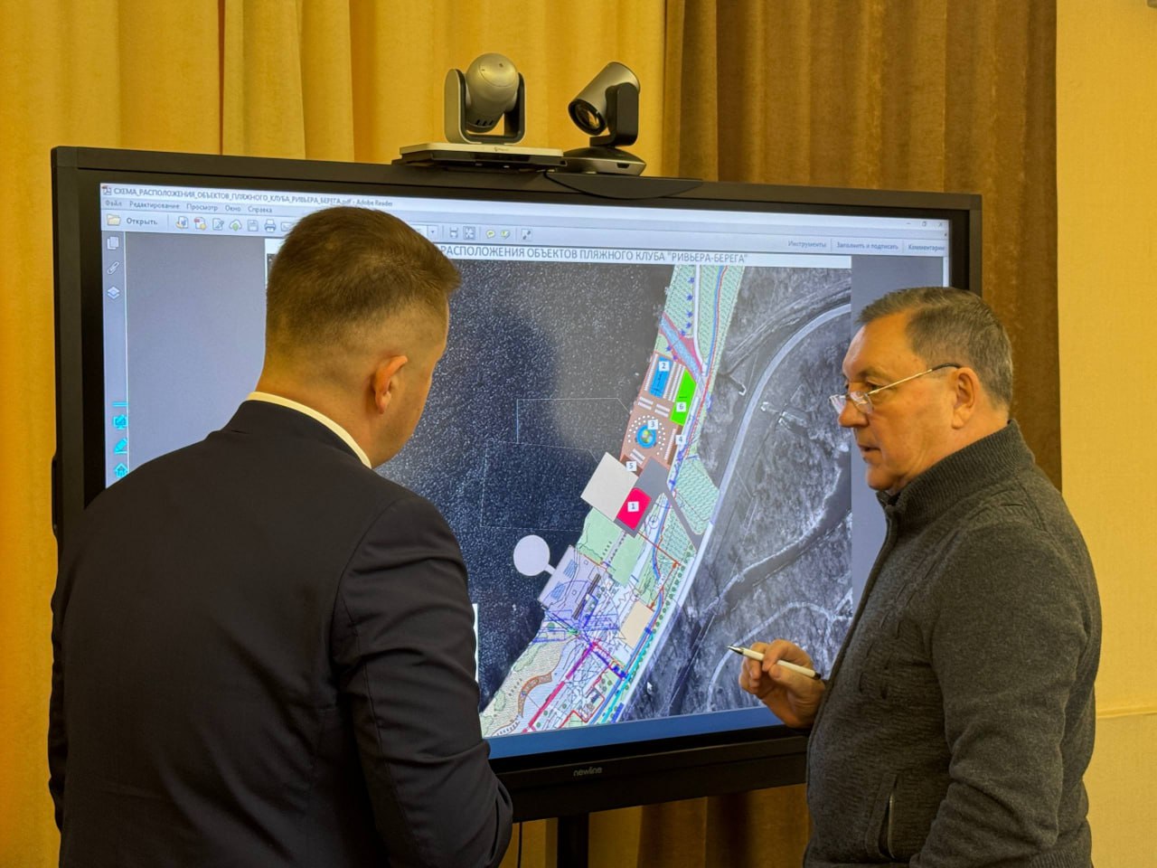 Кроме того, на встрече рассмотрели развитие парка «Берега». На одной стороне планируют построить открытый аквапарк, на другой – комплекс с бассейнами и семейным кафе.