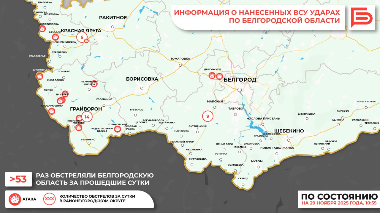 За прошедшие сутки ВСУ обстреляли Белгородскую область не менее 53 раз