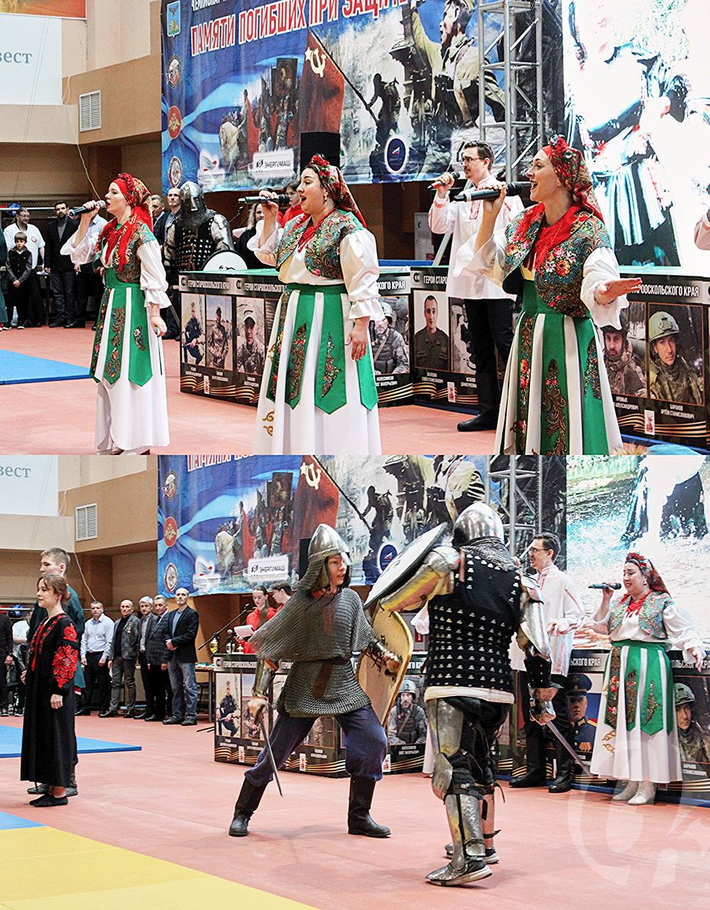 Церемонию украсили выступления вокального ансамбля «Велия» и клуба военно-тактических игр «Казарла». Участники клуба продемонстрировали виртуозное владение холодным оружием под музыку композиции «Русский мир», что напомнило гостям о славных воинских традициях.