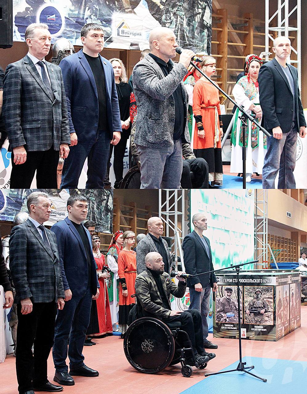 С напутственными словами выступили известные личности: герой Российской Федерации, почётный гражданин Андрей Богатов; герой Российской Федерации, руководитель Белгородского отделения организации ветеранов «Боевое братство» Вячеслав Воробьев; депутат Белгородской областной Думы Владимир Ващенко; заместитель начальника департамента по социальному развитию Михаил Глеков и организатор соревнований, президент Федерации армейского рукопашного боя Сергей Зенов.