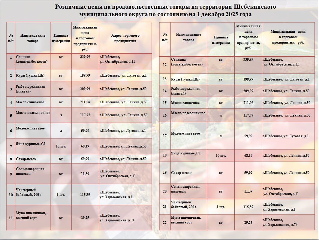 Ивнянский Публикуем информацию о том, где дешевле всего можно купить необходимые продукты в городе Валуйки. Цены представлены на 01 декабря 2025 года.