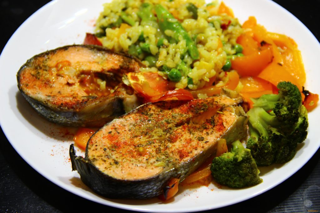 Перед тем как приступить к запеканию, все овощи следует тщательно промыть и обсушить. Брокколи, если она свежая, нужно разделить на крупные соцветия, а остальные овощи нарезать на крупные куски, чтобы они не подгорели во время приготовления. Все стейки кижуча необходимо обильно натирать солью и специями, сбрызнуть лимонным соком и оставить при комнатной температуре на 10-15 минут, чтобы рыба пропиталась ароматами.