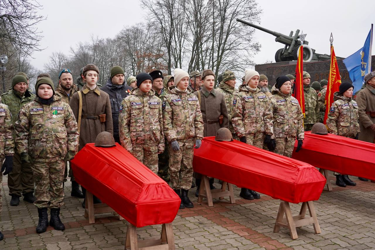 Сегодня на торжественной церемонии присутствовали внуки младшего лейтенанта Грачёва из города Белёв Тульской области Алексей Викторович и Ирина Юрьевна, внучка старшины Коздурова из Калининграда Инна Викторовна и земляки сержанта Дурницына из Ханты-Мансийского автономного округа. Им были переданы уцелевшие личные вещи и награды их родных , благодаря которым удалось установить личности погибших.