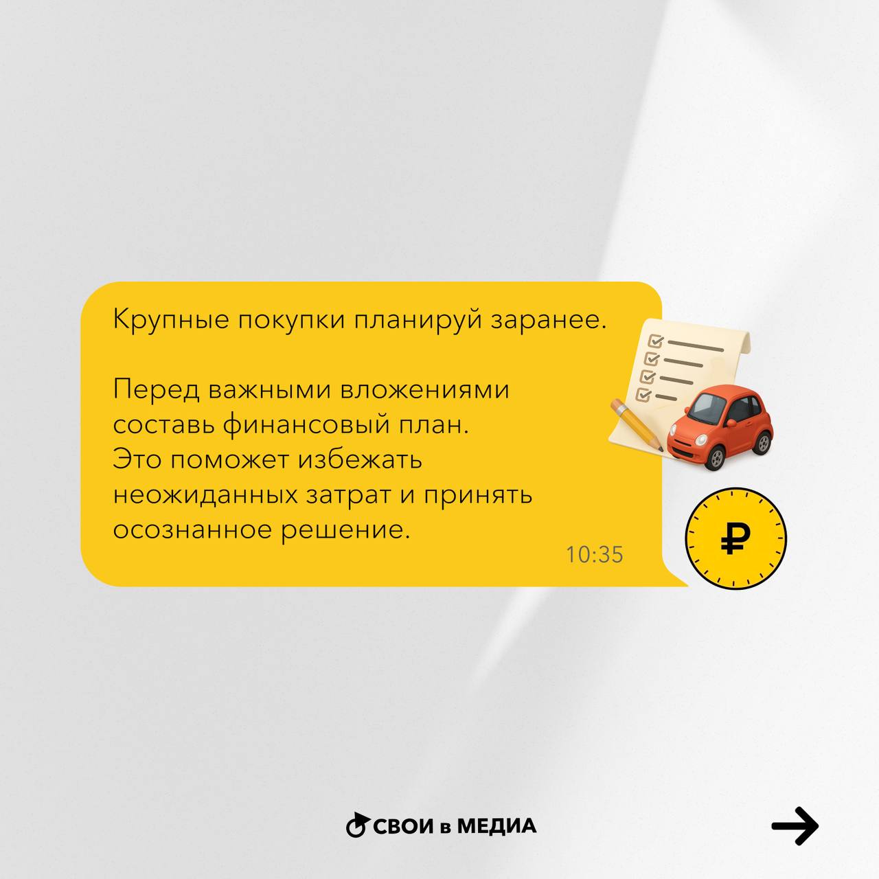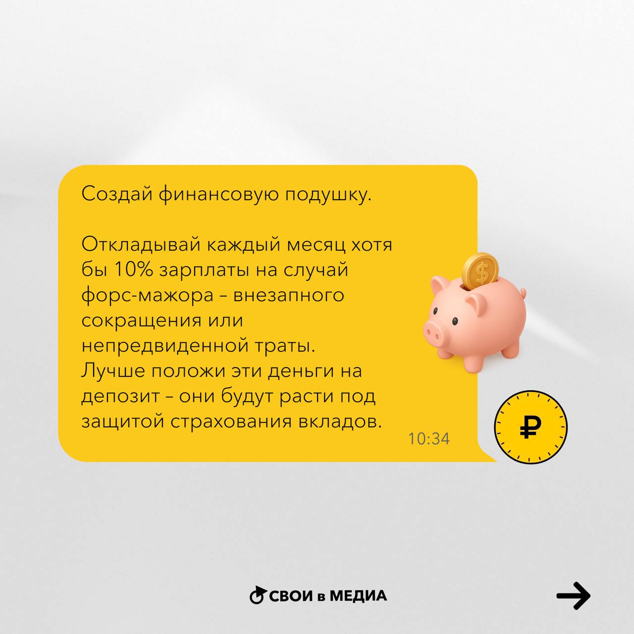 Команда #СВОИвМедиа, совместно с экспертами белгородского отделения Банка России, подготовила карточки, в которых ты найдешь простые и понятные советы для стабильного и комфортного финансового будущего.