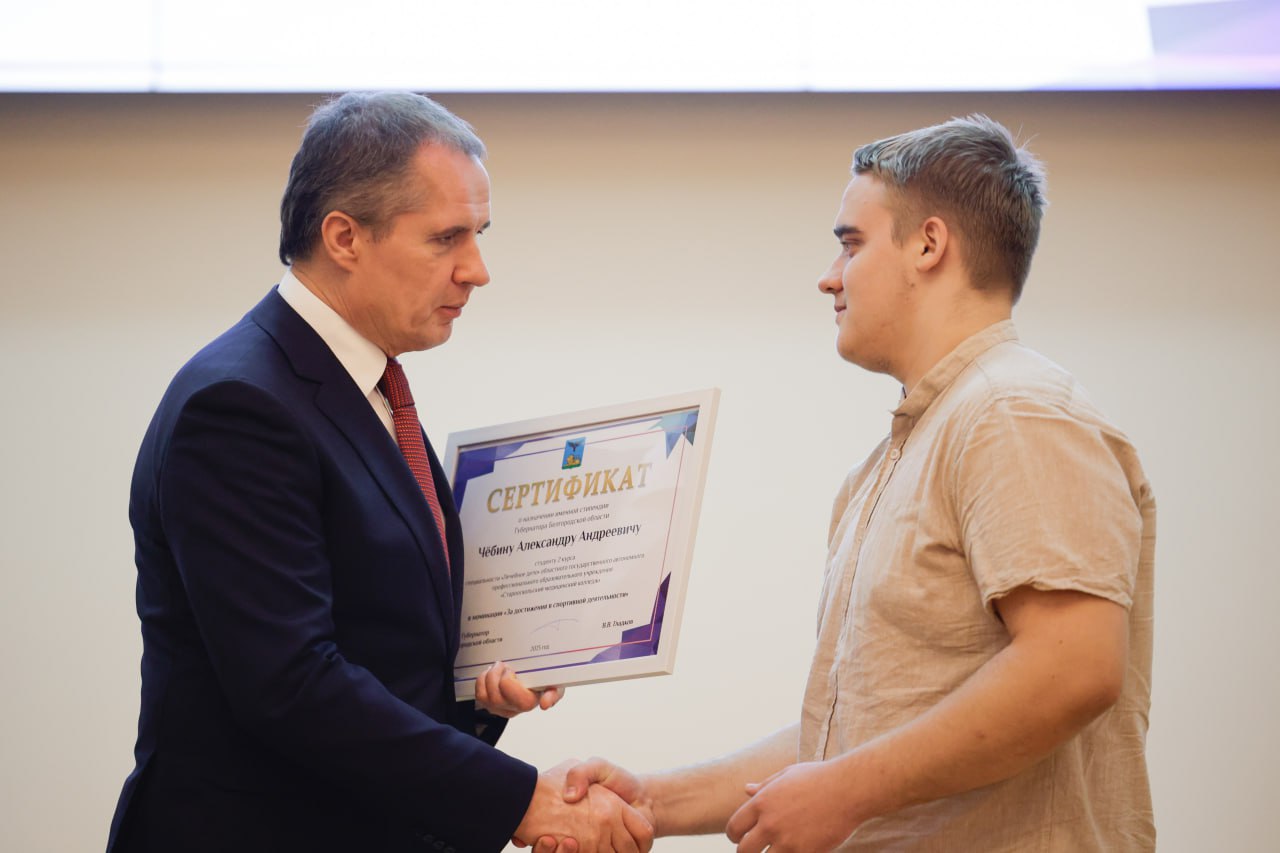 Губернатор Белгородской области Вячеслав Гладков отметил спортивные достижения студентов именными стипендиями.