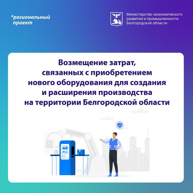 Министерство экономического развития и промышленности Белгородской области объявило о проведении конкурса на предоставление субсидий субъектам малого и среднего предпринимательства Белгородской области на возмещение затрат, связанных с приобретением оборудования для создания и расширения производства в городских и иных поселениях Белгородской области (приём документов до 20 декабря 2025 года).