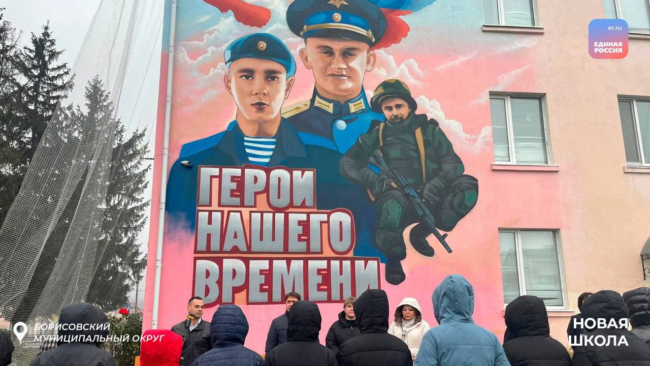 В Борисовском округе в школе имени Героя Советского Союза А. М. Рудого состоялось торжественное открытие мурала, выполненного на стене учебного заведения. Изображение создано в рамках партпроекта «Новая школа». Талантливые художники трудились над творением произведения, посвященного Героям – участникам Специальной военной операции.