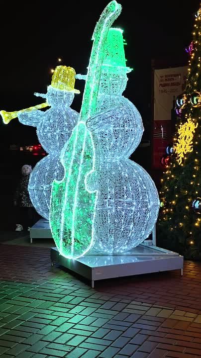Входную группу университета украсили светящимся снеговиками.
