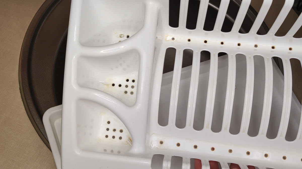 Сушилки для посуды могут быстро покрываться налетом и пятнами от жесткой воды. Чтобы вернуть им первозданный вид, налейте немного уксуса на поверхность сушилки, чтобы полностью покрыть налет, добавив тёплую воду в равных пропорциях. Если загрязнения сильные, уксус можно использовать без разбавления. Оставьте смесь на 20 минут, а затем возьмите губку или щетку, чтобы легко очистить поверхность.