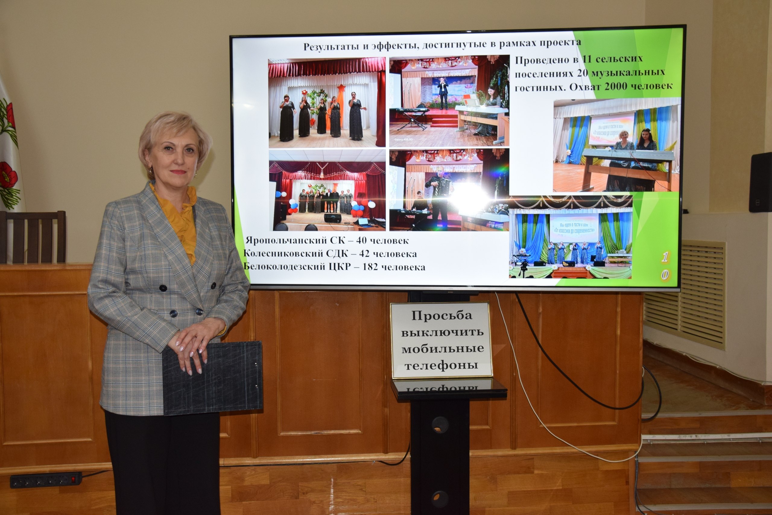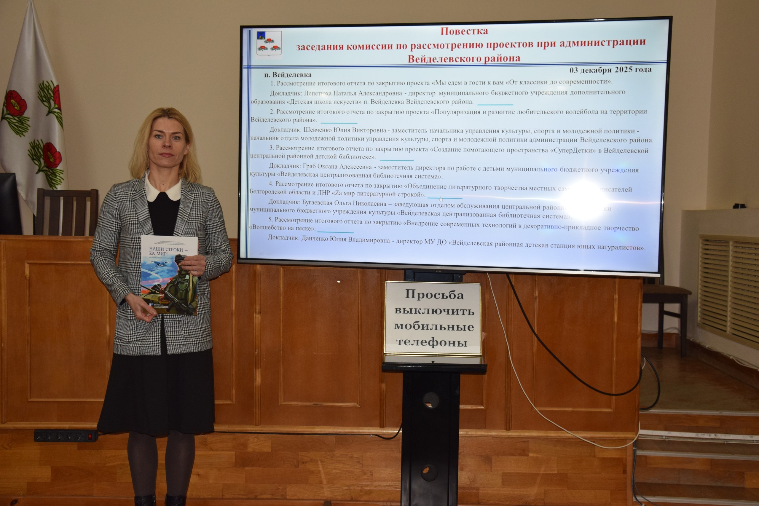 «Объединение литературного творчества местных самобытных писателей Белгородской области и ЛНР «Zа мир литературной строкой»: Заведующая отделом обслуживания центральной районной библиотеки Бугаевская Ольга Николаевна представила отчет о закрытии проекта, направленного на поддержку литературного творчества и укрепление связей.