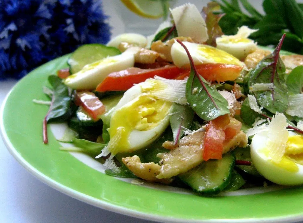 Комбинация картофеля, куриного филе и перепелиных яиц придает этому блюду насыщенный вкус и сытность, а свежие овощи и зелень делают его легким и свежим. Это салат легко впишется в любую трапезу, ведь его уникальная текстура и привлекательный вид совершенно точно не оставят никого равнодушным.