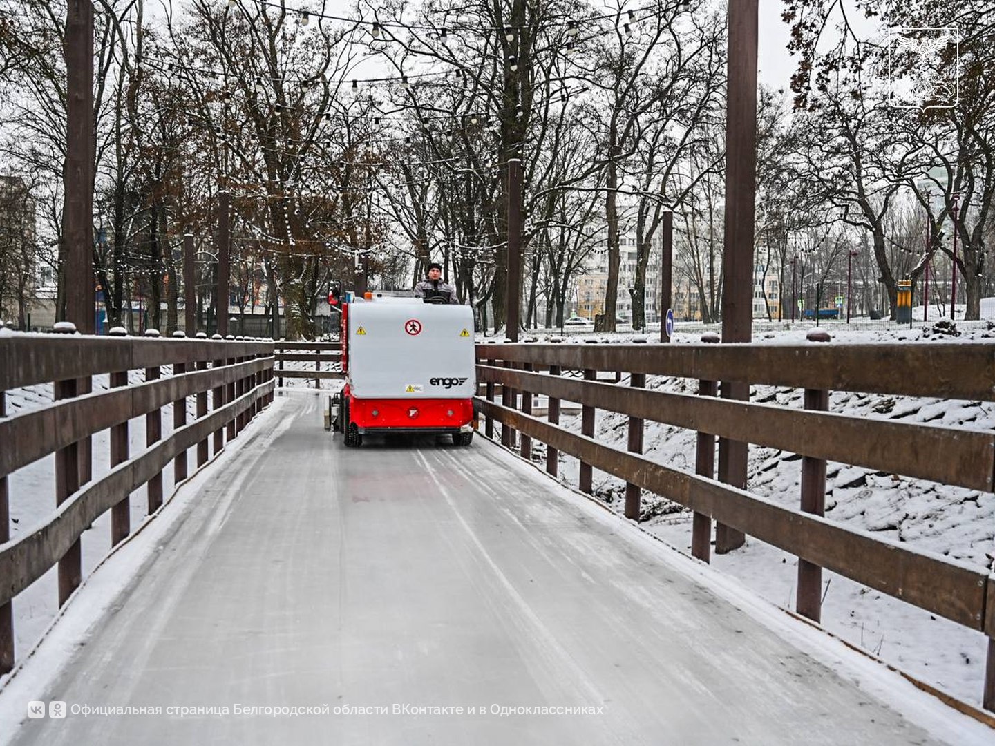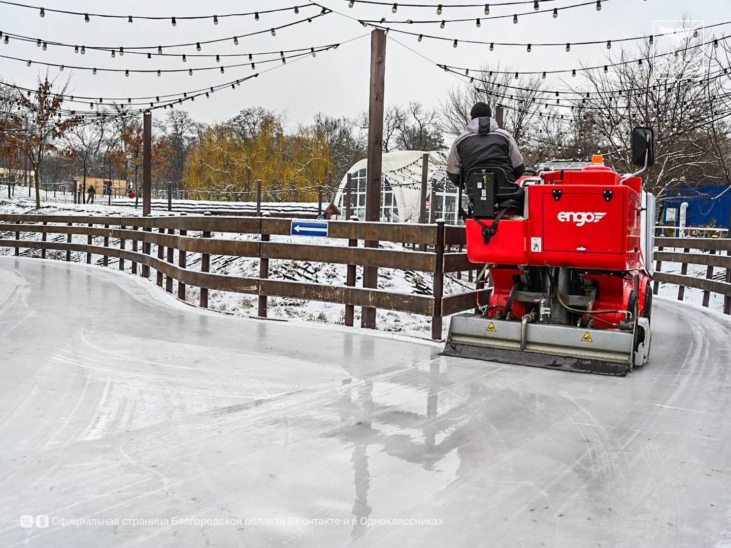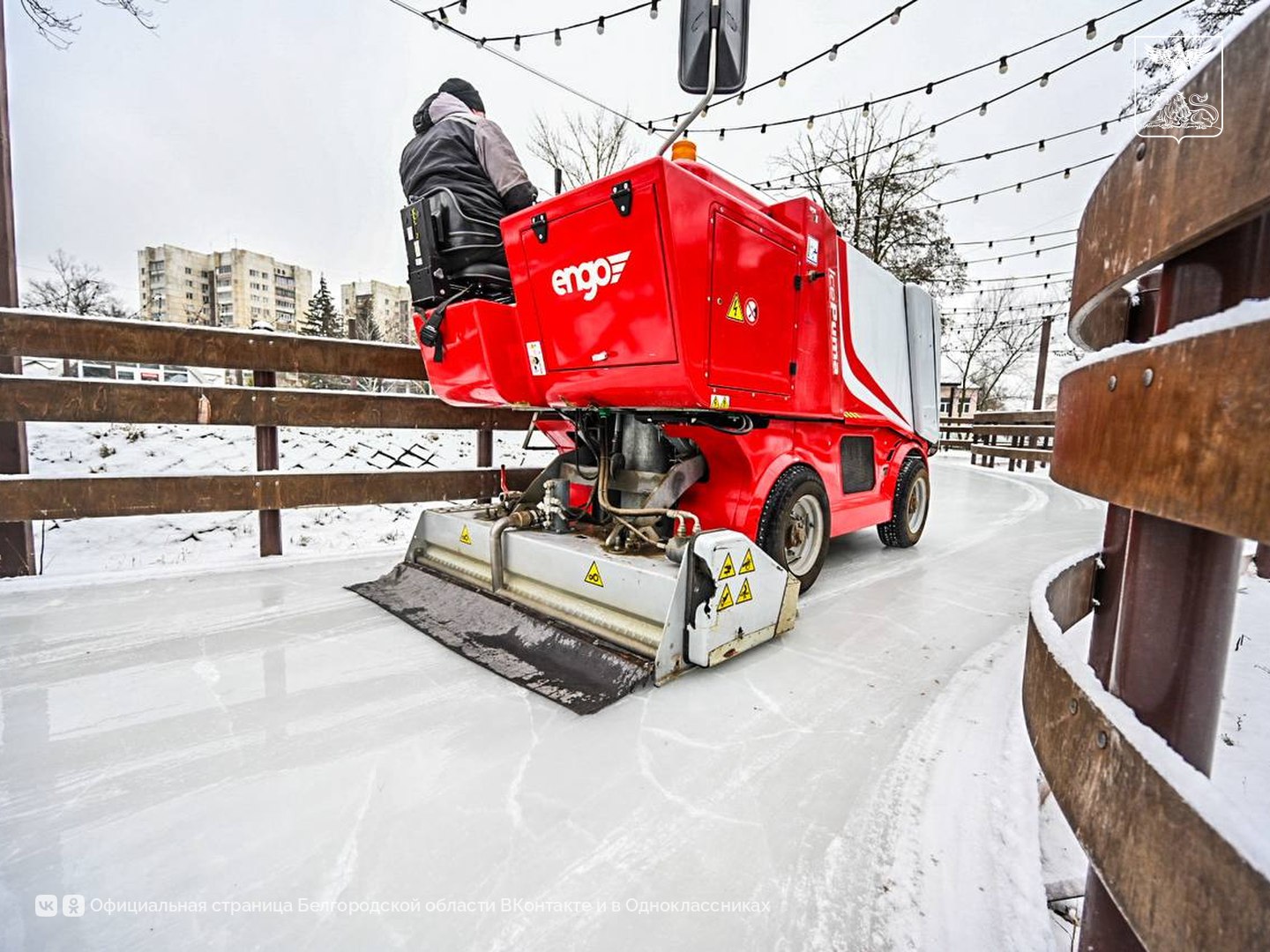 Работы выполнены более чем на 70 %. В настоящее время специалисты формируют финальный слой ледового покрытия. Это кропотливая работа, от которой зависит качество катания.