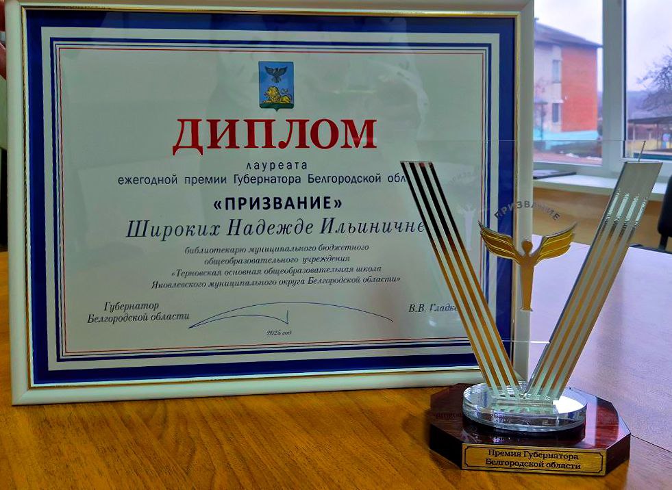 В рамках мероприятия Премией Губернатора Белгородской области «Призвание» в этом году была награждена библиотекарь МБОУ «Терновская ООШ» Широких Надежда Ильинична — за высокий профессионализм, преданность делу и вклад в развитие духовно-нравственного воспитания подрастающего поколения.
