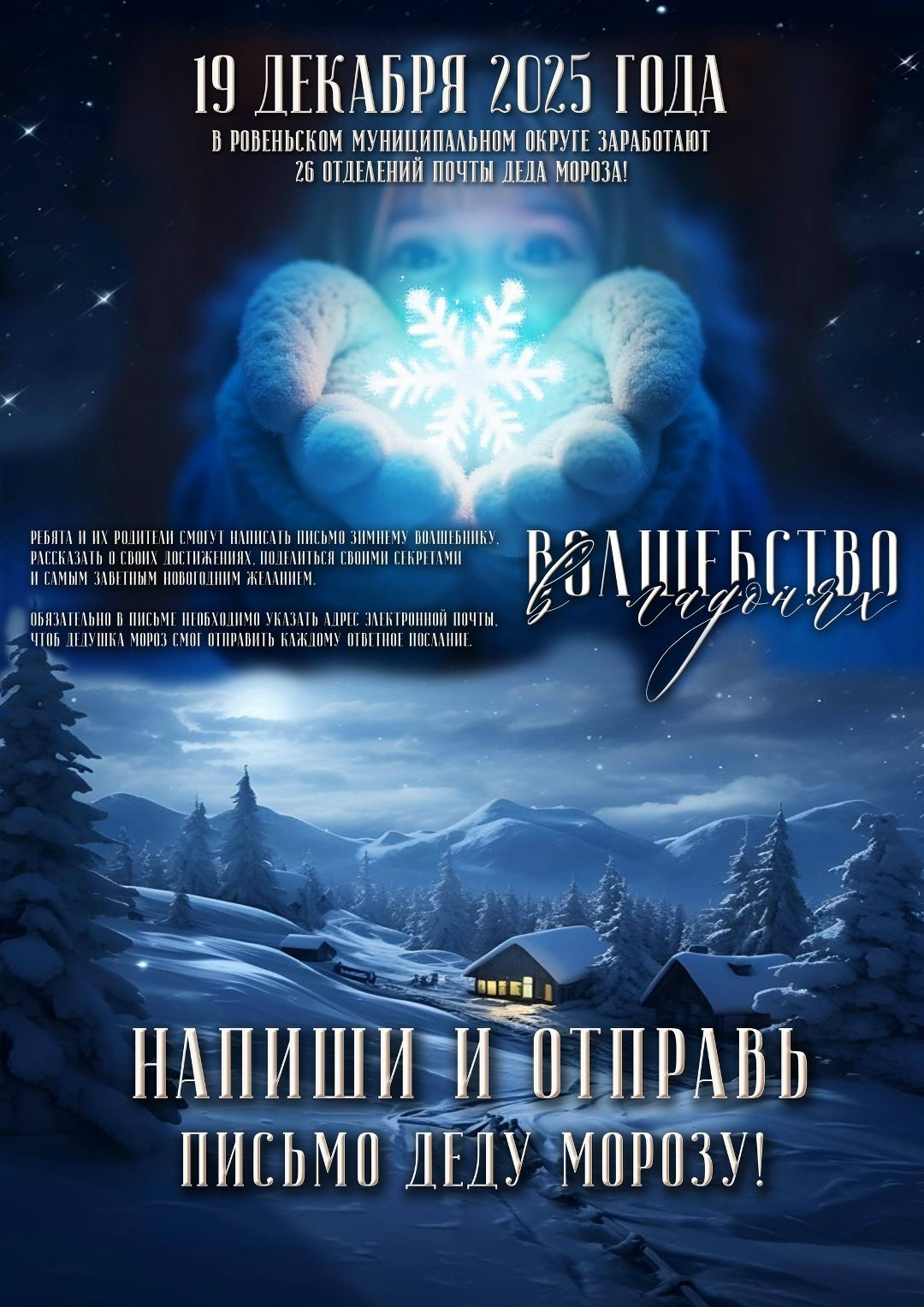 Уважаемые ровенчане в нашем районе начинает работу почта Деда Мороза. Вы можете написать и отправить письмо сказочному волшебнику по адресу: