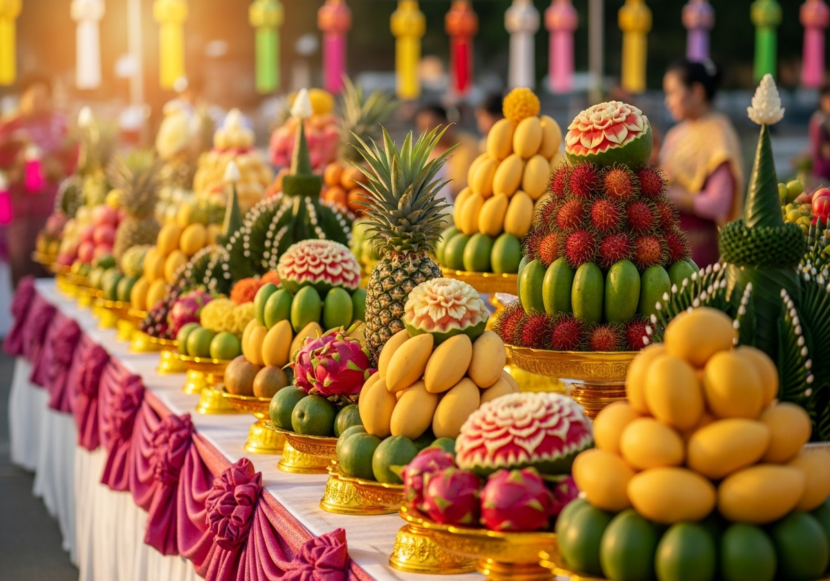 Тайланд в праздничные дни — настоящий пиршественный рай! Яркие рынки, щедрые подношения и, конечно, разнообразие фруктов, ставящих в центр внимания культурные традиции и духовные ритуалы.