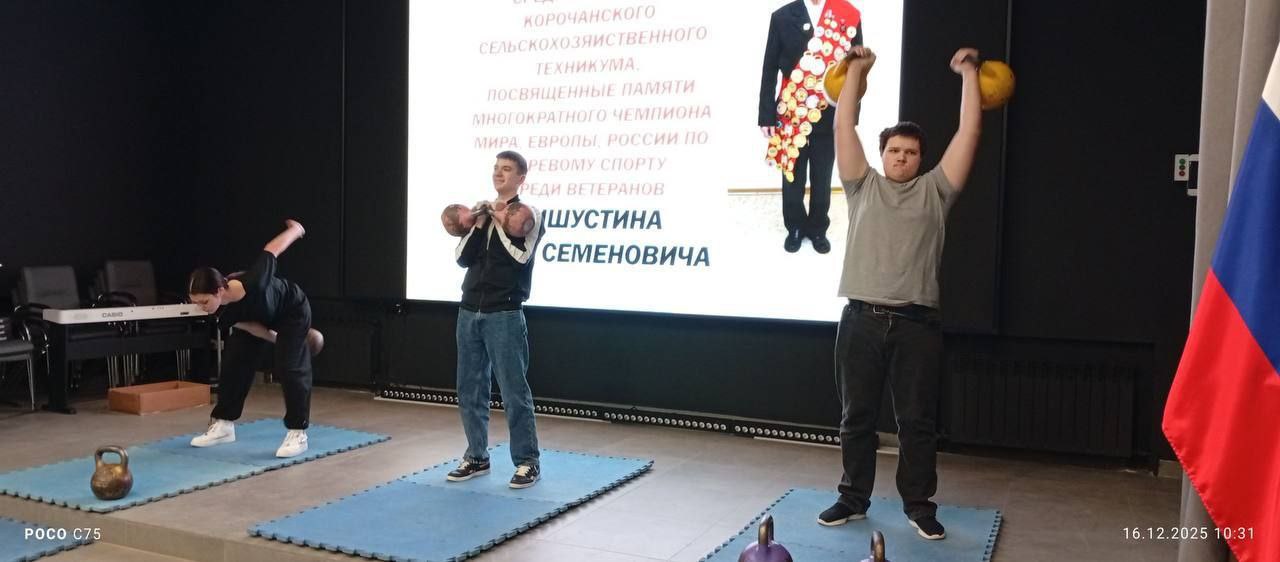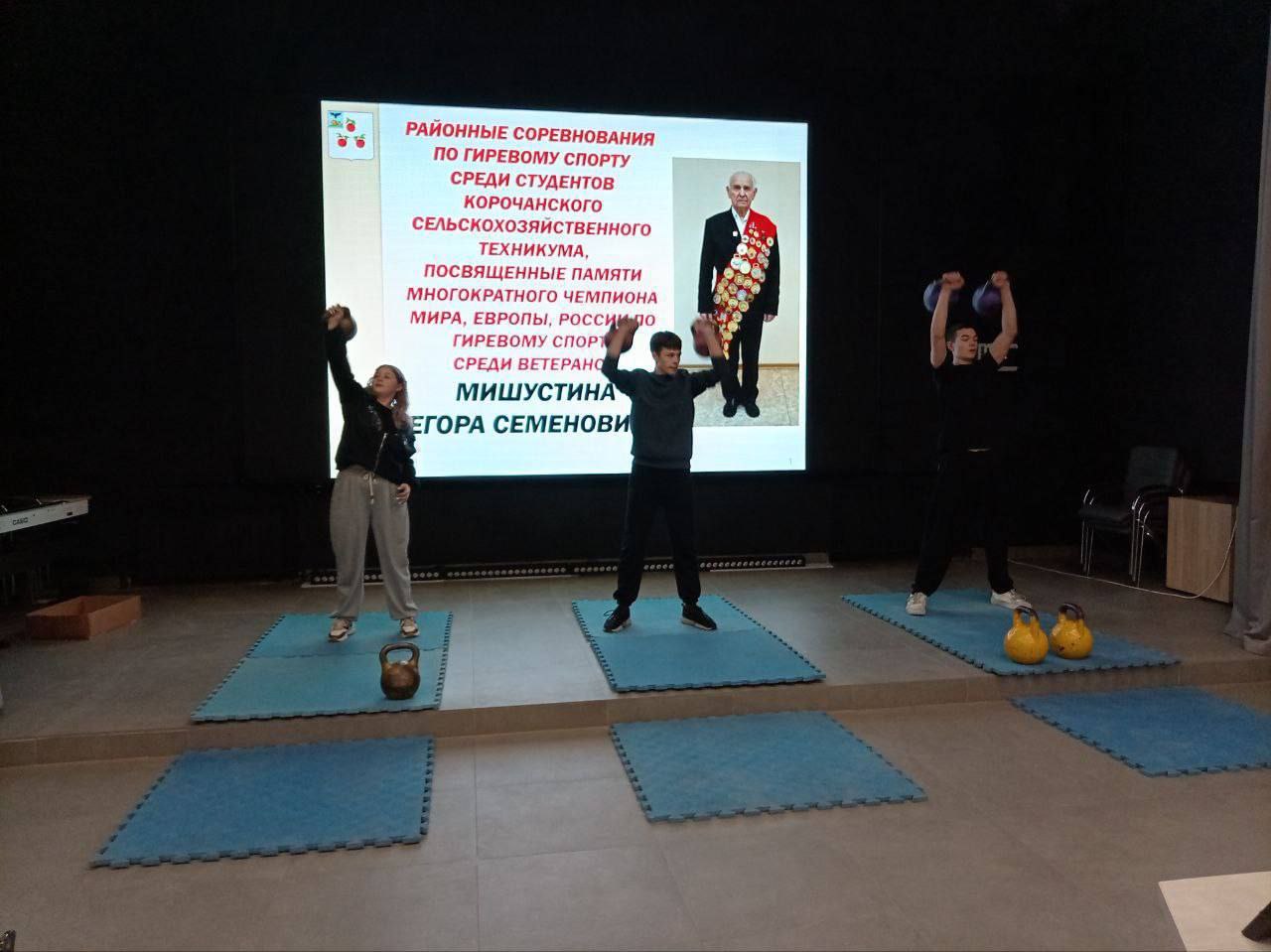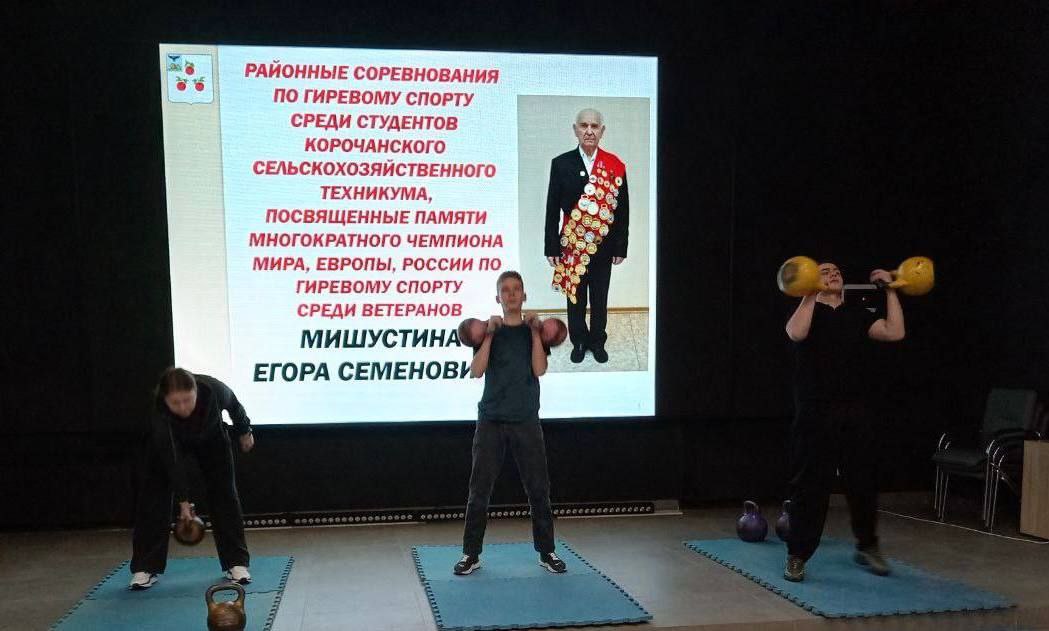 В Корочанском техникуме прошли соревнования по гиревому спорту, посвящённые светлой памяти легендарного спортсмена Егора Семёновича Мишустина.