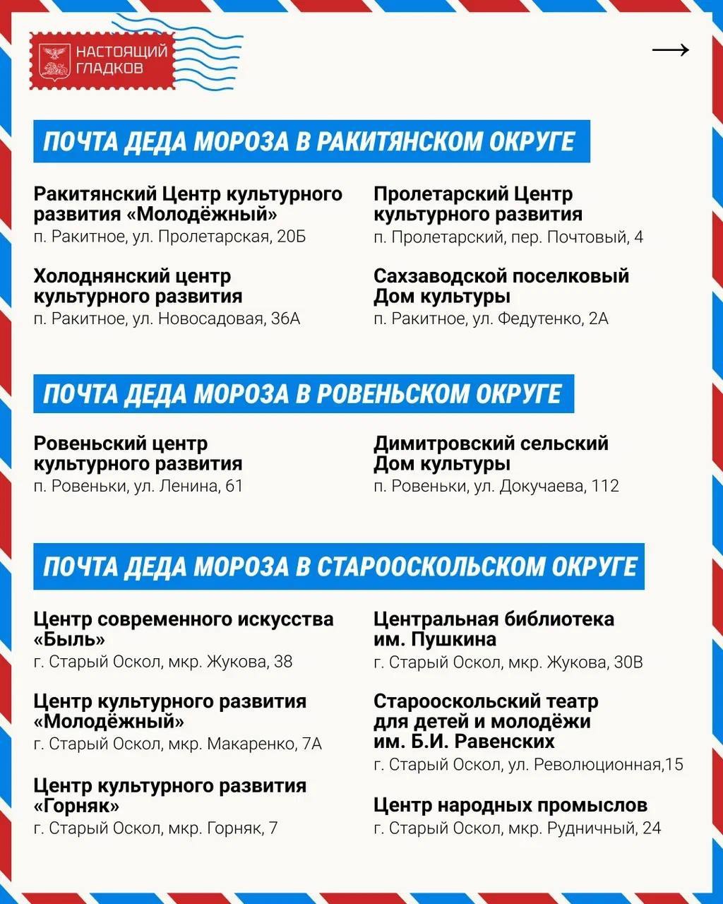 В Белгороде в парке Ленина открылось главное отделение новогодней почты