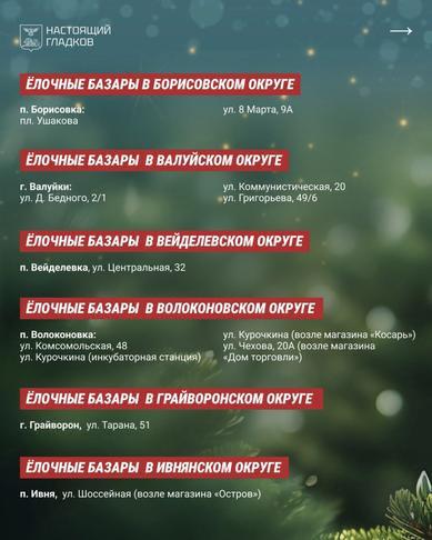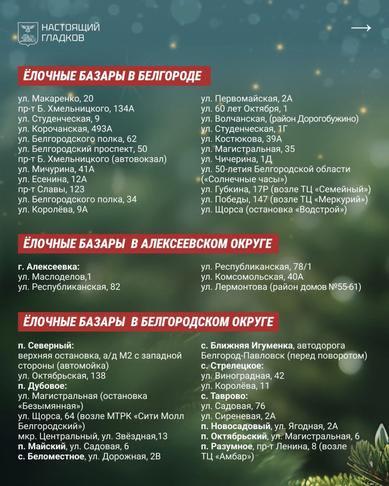 Карточками с адресами ёлочных базаров в Белгородской области поделился Вячеслав Гладков.