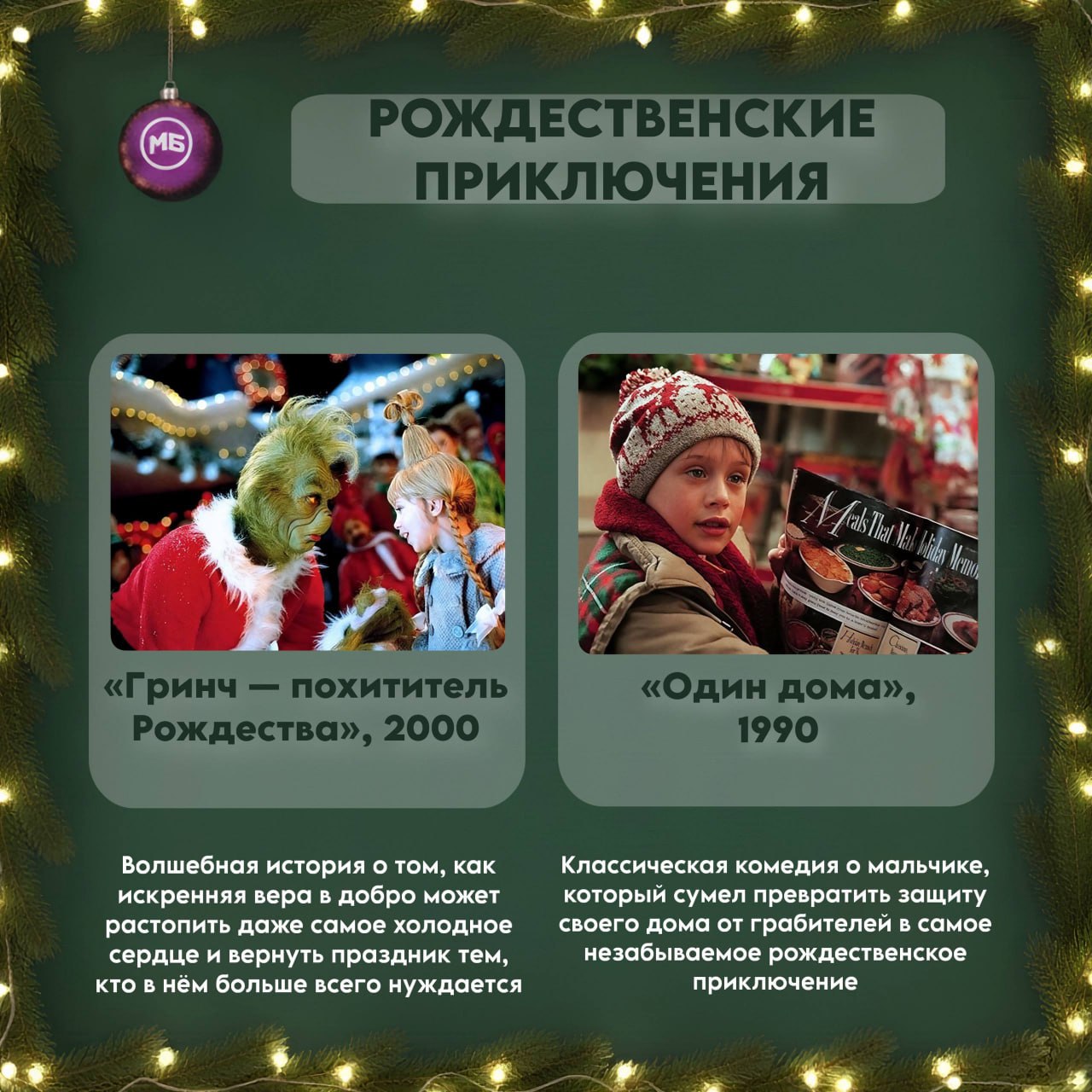 Листайте карточки, выбирайте фильм на вечер и делитесь в комментариях своим главным новогодним фильмом!