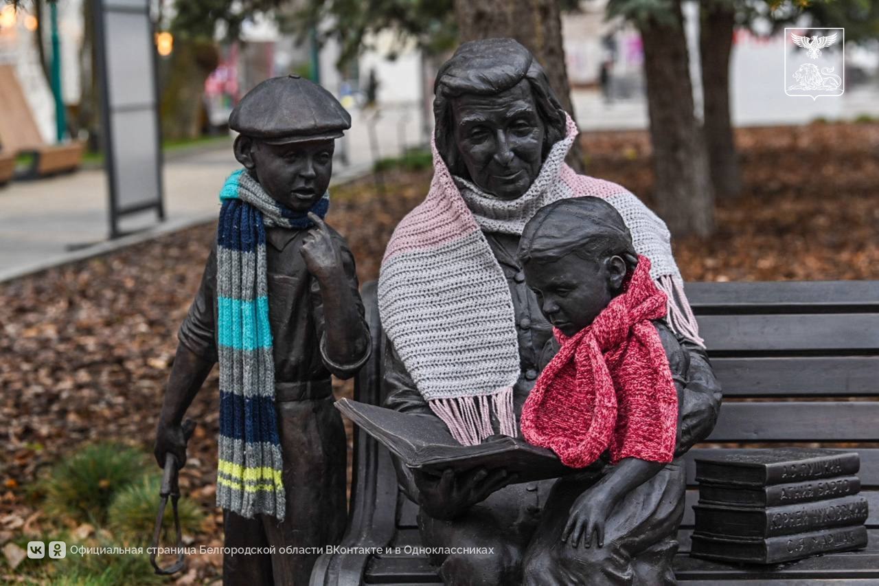 Мастерицы связали теплые шарфики для городских памятников — настоящий символ тепла сердец, которое способно согреть целый город.