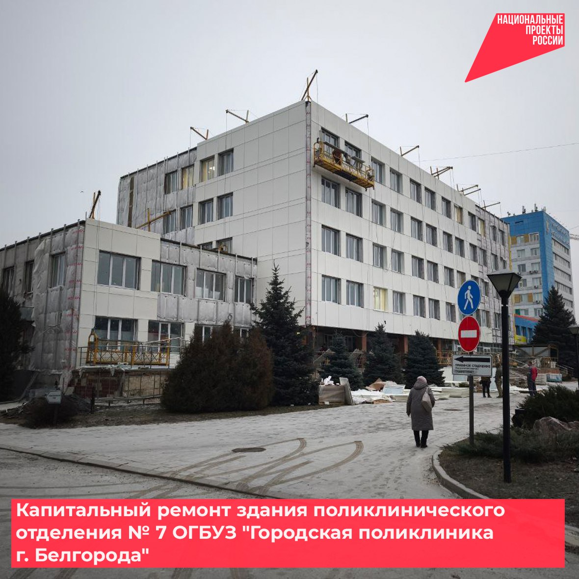 Капитальный ремонт здания поликлинического отделения № 7 ОГБУЗ «Городская поликлиника г.Белгорода» ведется в рамках национального проекта «Продолжительная и активная жизнь» федерального проекта «Модернизация первичного звена здравоохранения», на эти цели выделено более 320 млн рублей.