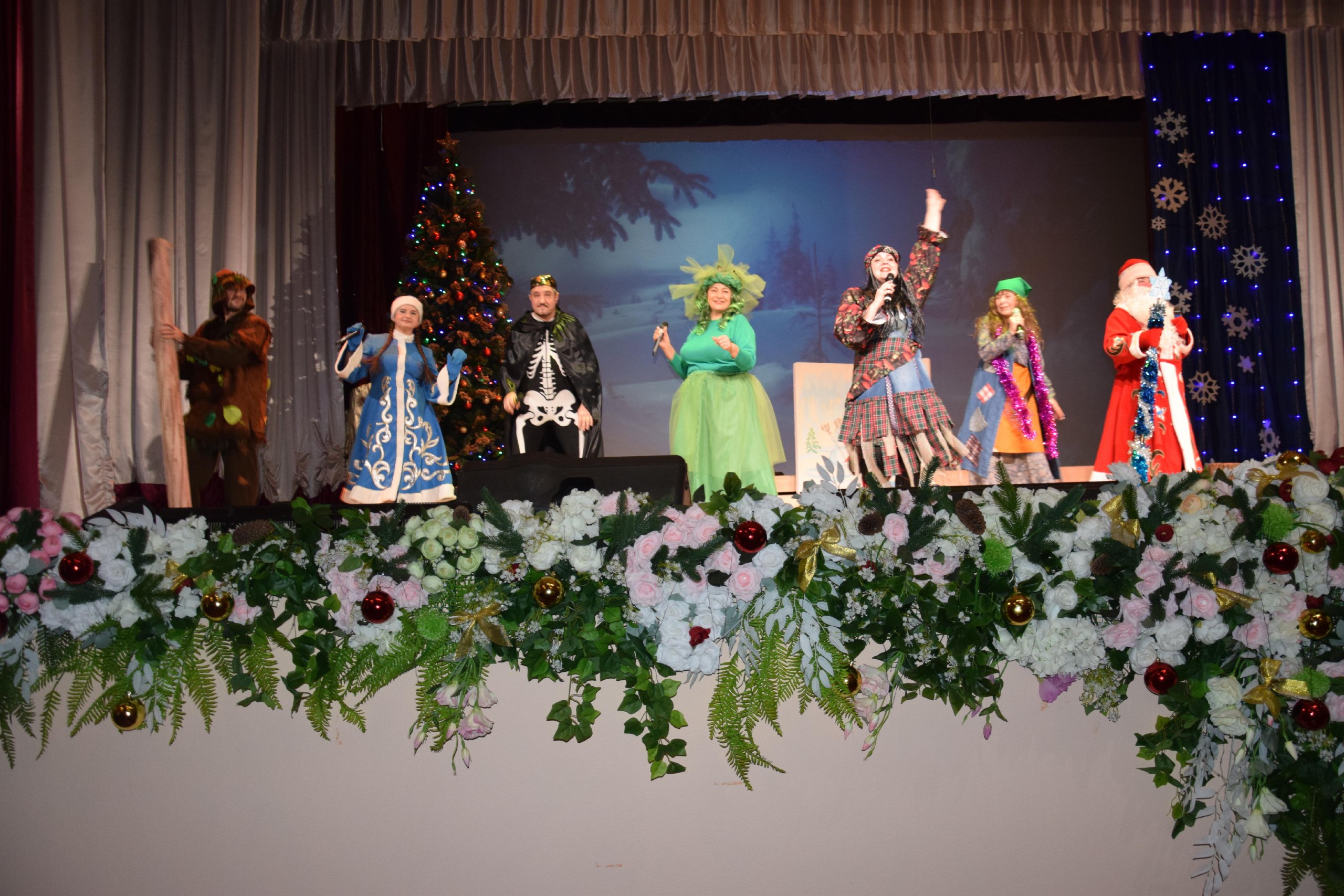 Для маленьких зрителей работники культуры показали современную сказку с любимыми сказочными героями – Бабой Ягой и её заморской сестрой, Кикиморой, Лешим, Кощеем и, конечно же, главными героями праздника Дедом Морозом и Снегурочкой. Веселые конкурсы и зажигательные танцы подарили каждому ребёнку и взрослому замечательное праздничное настроение.