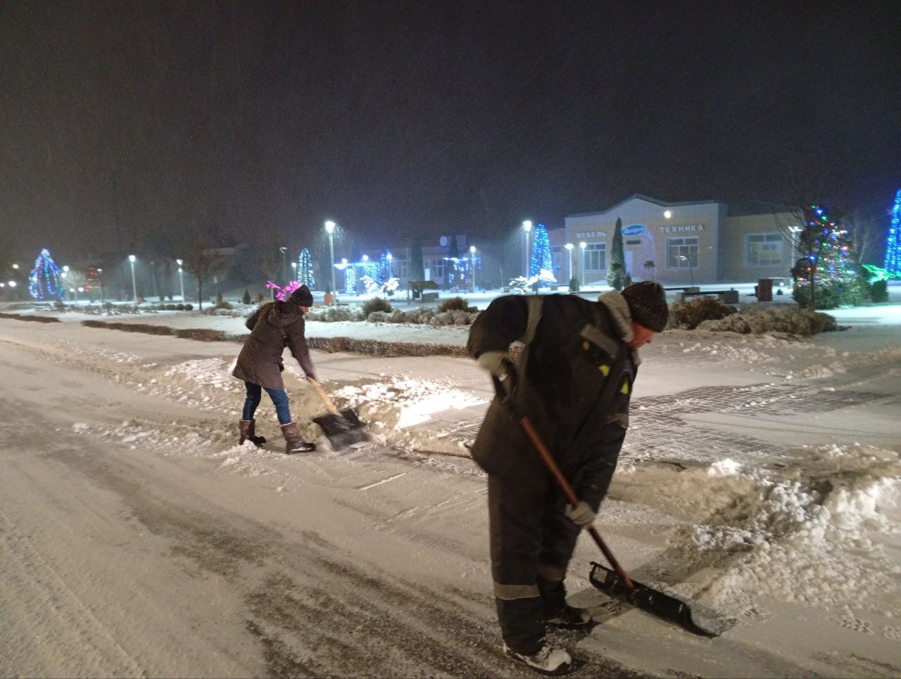 С самого раннего утра коммунальные службы оперативно приступили к работе по расчистке территории