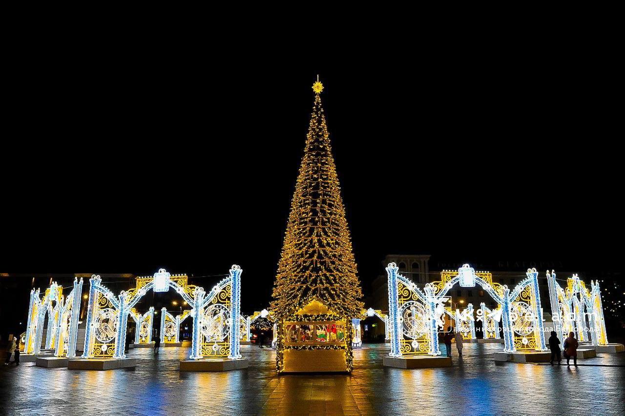 Вслед за ёлкой на Соборной площади в белом городе зажглись праздничные огни.