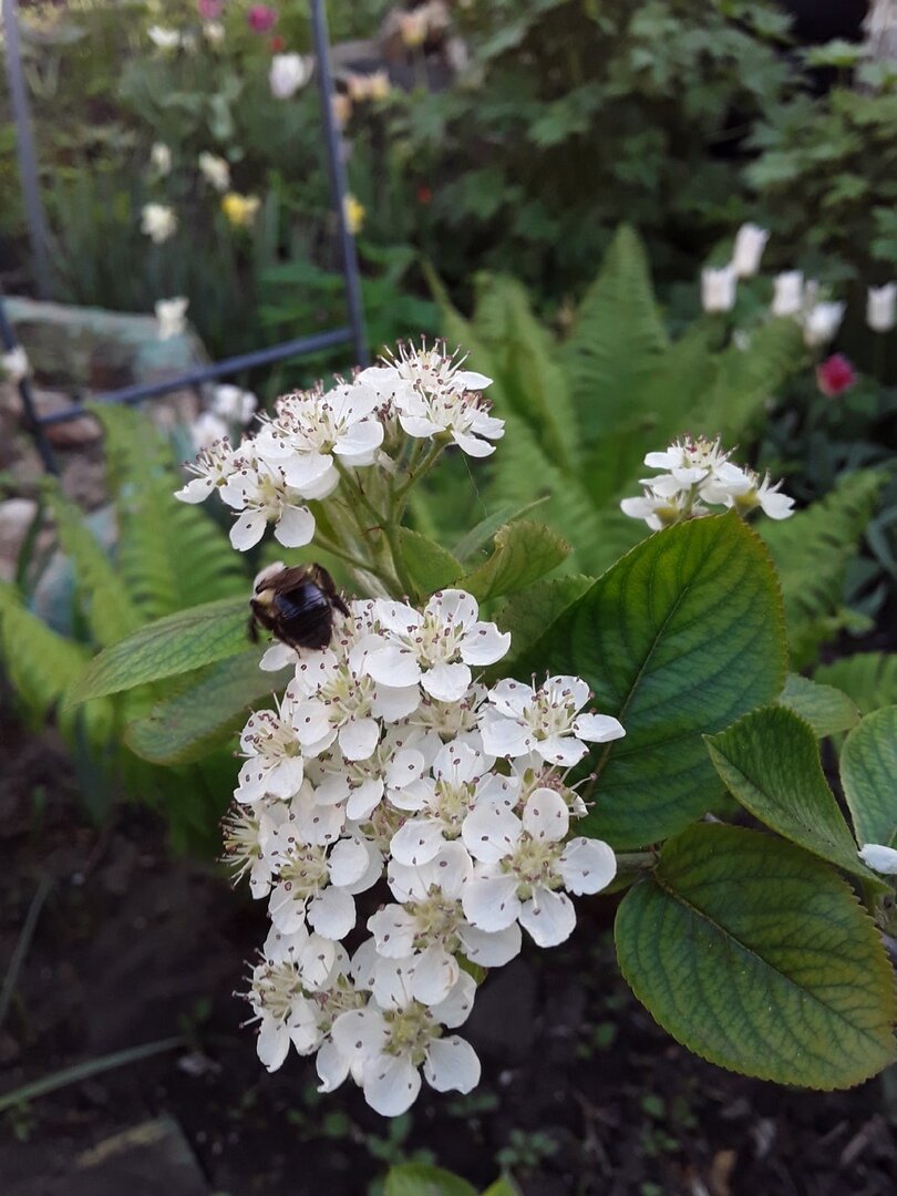 - Куст черноплодной рябины радует глаз белыми цветами весной, а летом величественно стелет свою тень и завлекает насекомых.