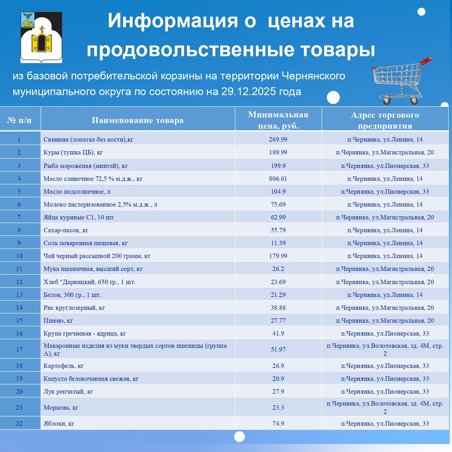 Информируем вас об актуальных ценах на продукты питания в нашем округе.