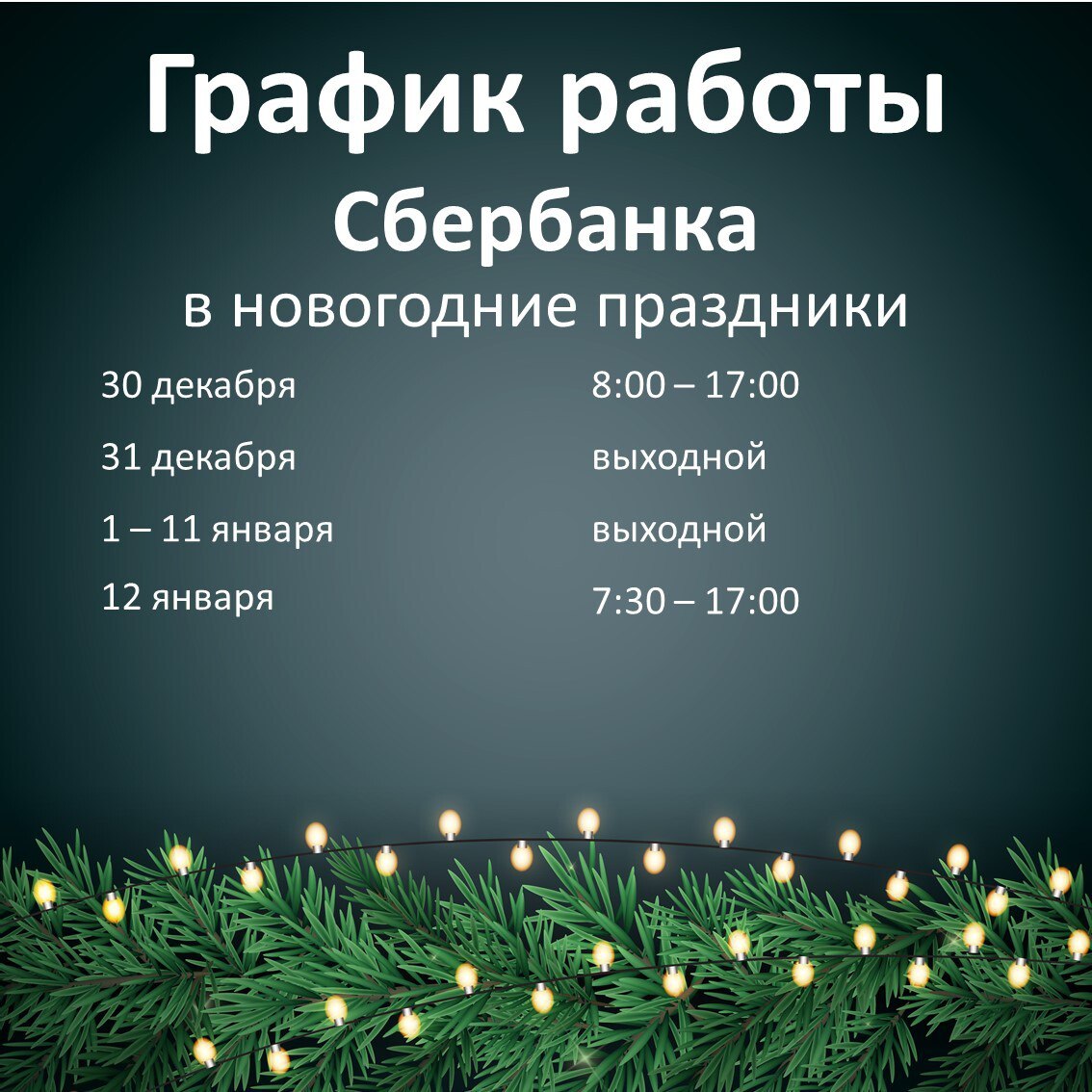 Дорогие друзья! Обратите внимание, что в ранее опубликованный график работы отделения Сбербанка в новогодние праздники внесены изменения.
